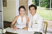 It was 4:00pm and I finally finished getting ready. It was a good thing that Jo was a bit late as well. We were lucky that the registrar was very relaxed about starting the ceremony on time. Eventually after what seemed like years, we were ready to start the ceremony. Marc started the music, and Carter walked in to the music of "Moon River", from the movie "Breakfast at Tiffany's". Jo and her father followed soon after and I found it very difficult to hold back my tears of joy. She looked beautiful. The room was filled with emotions riding as high as Tsunami waves. Then as Guy Wilkinson (Jo's brother) read the poem, I couldn't help but give a sniffle, which according to others started a massive wave of tears from the females in the room. Honestly, I didn't know.